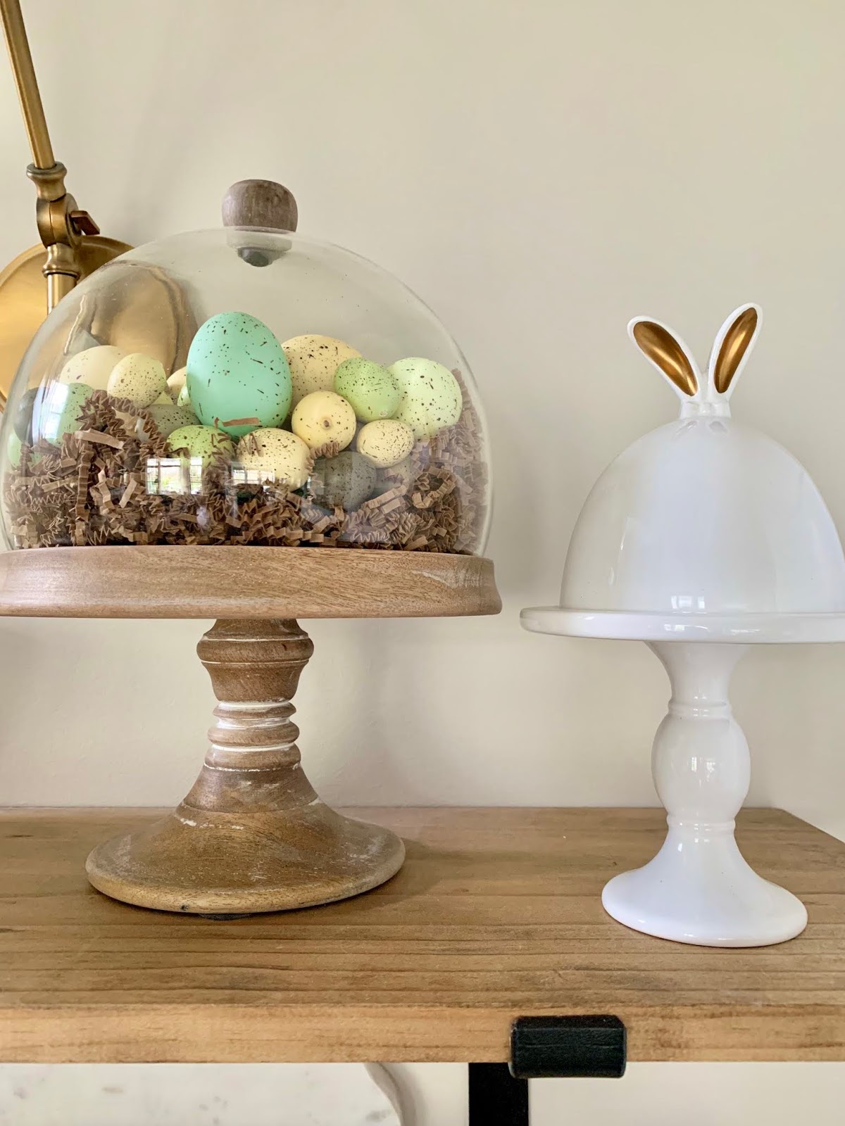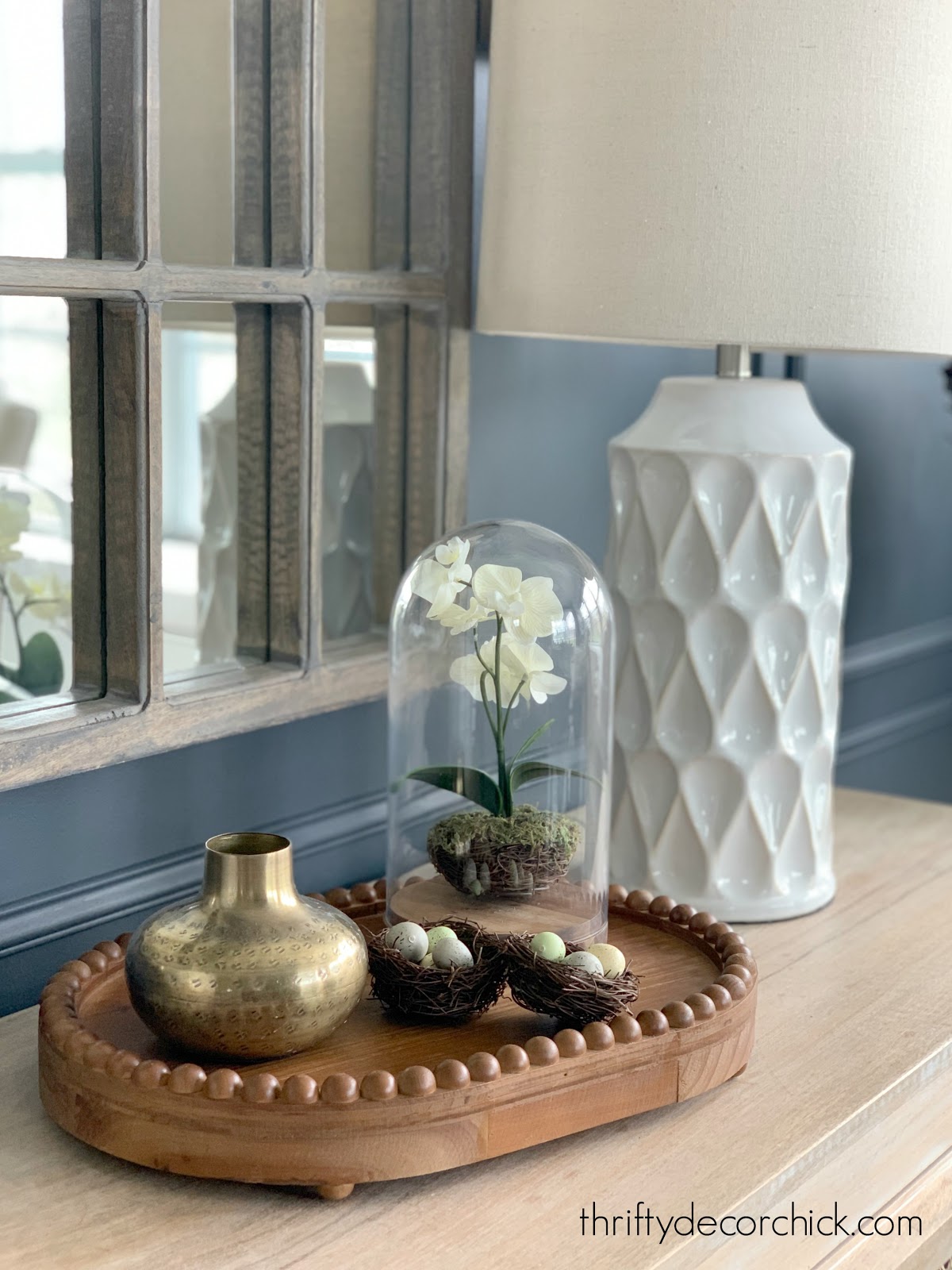 I was running out of bunny stuff 😂 so I started looking around my decor stash for items that felt like they fit in for spring. I've had the fake orchid for awhile and like displaying it under a cloche: