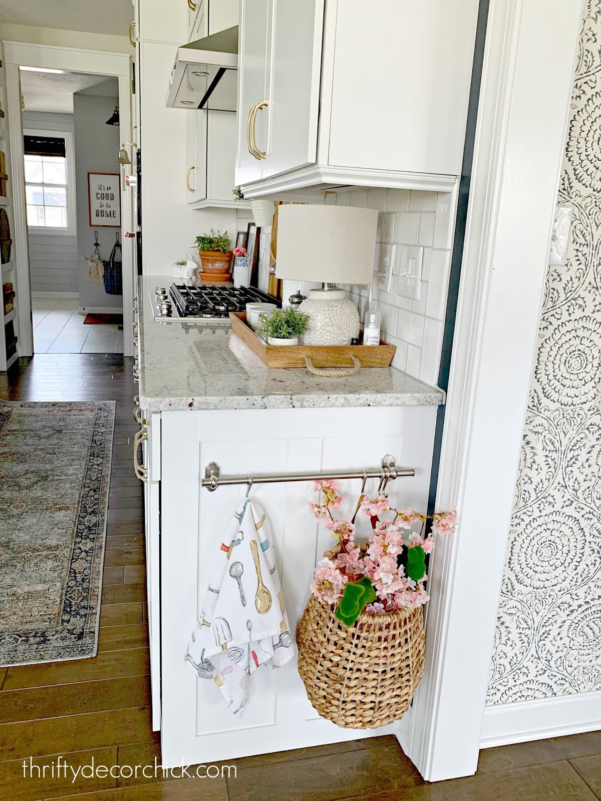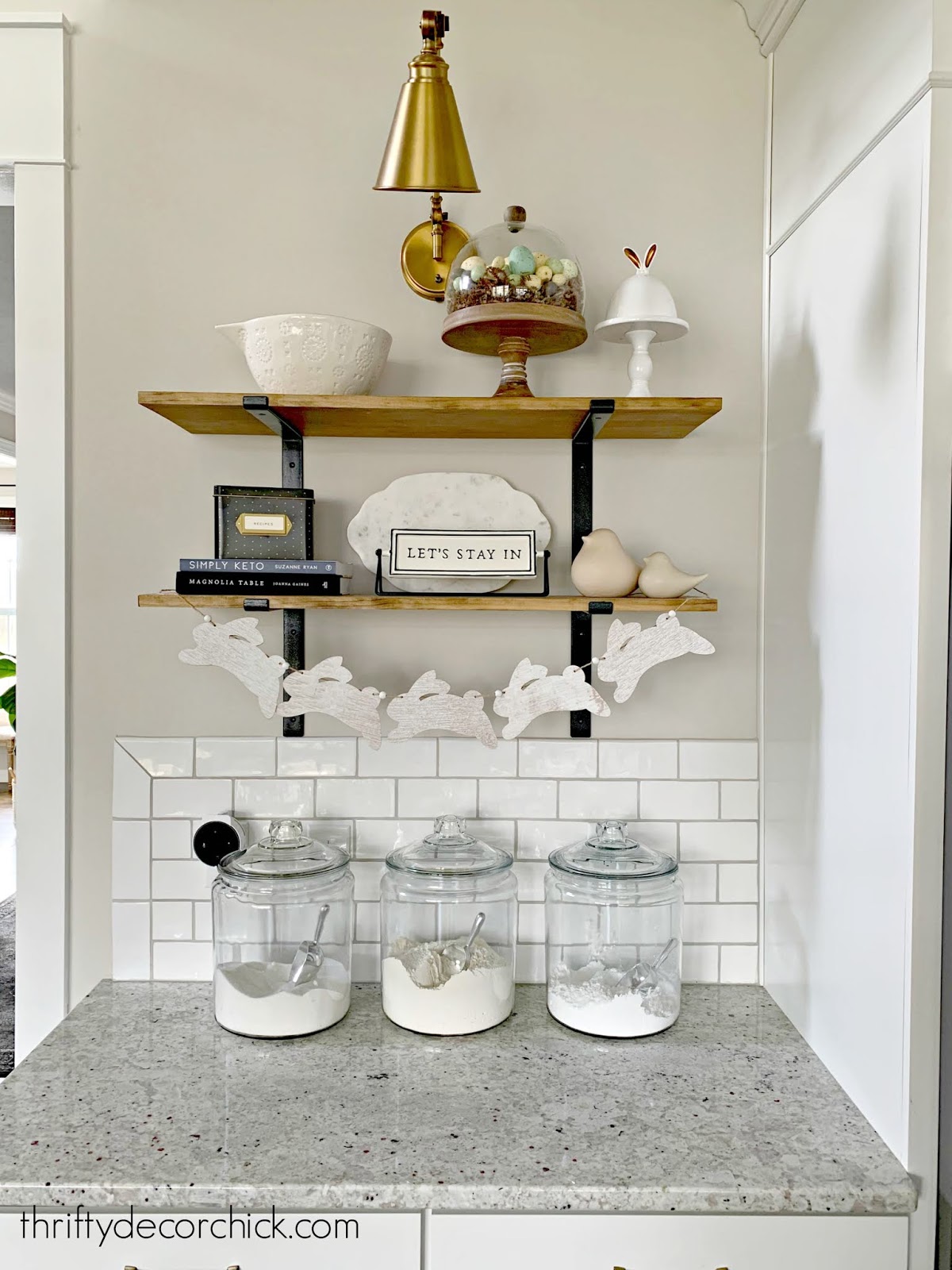 I added quite a few spring touches in the kitchen -- including the open shelves: