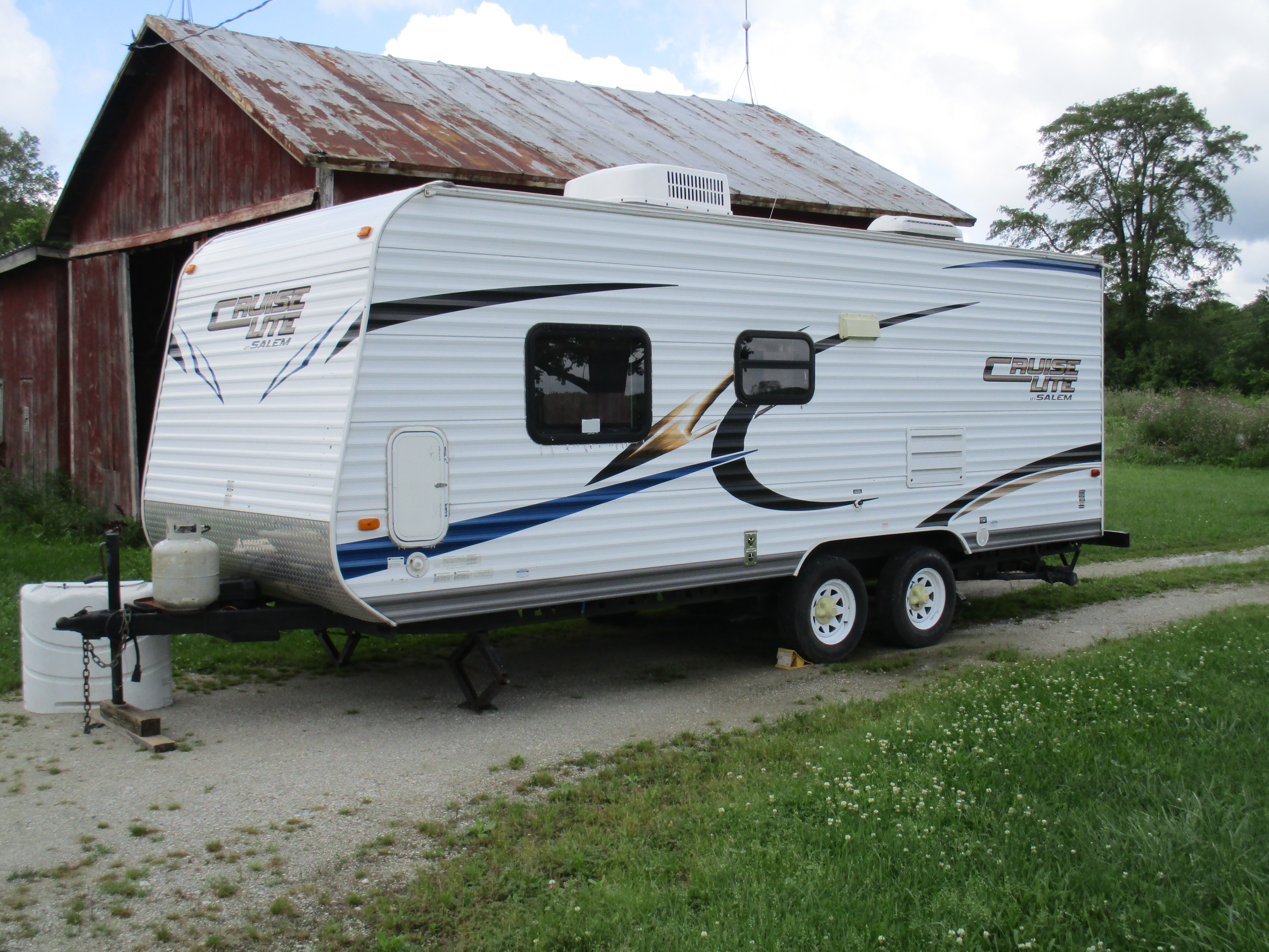Our nephew and his wife were selling their hard sided camper, and said they just don't go camping anymore. They had not used it for a year. We went and looked at it, but next time we buy a camper we'll make sure we double check some things. We simply trusted their word ("everything works" but again they had not used it for a year). Thankfully, we were able to simply transfer our camper plates. Oh, and it only sleeps 2 (he he!)