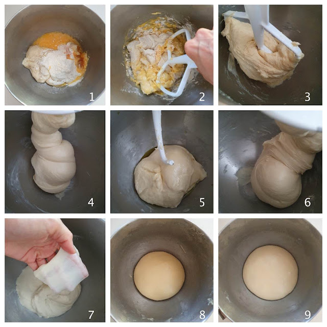 - Change to hook attachment and knead for another 3 minutes or until the dough comes together. Add in butter and continue knead for 10 - 12 minutes or until reach window pane stage. The whole kneading process, I stopped few times to scrape down the dough from the hook to be sure it is evenly kneaded and also to prevent the motor from overheating.