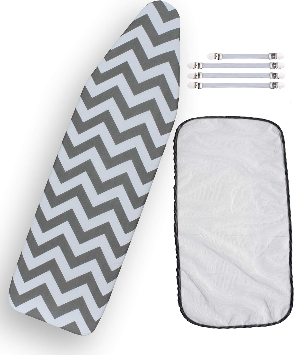 Ironing Board Cover Bundle 3 Items: 1 U.S. Standard Size, Extra Thick Felt Pad, Heat Resistant, and Scorch Resistant Cover Chevron Style,
