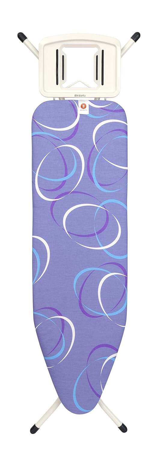 Brabantia Ironing Board with Solid Steam Iron Rest, Size B, Standard Moving Circles Cover