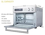 Xl capacity extra large 265 qt can roast a whole chicken easy bake a 12 inch pizza as a standard pizza oven or toast 6 slices of bread perfect for the whole family Dedicated toast function for precise toasting of bread from light to dark Accessories included this toaster oven comes with 1 crumb tray 1 grill tray 1 rack and 1 cooking basket And comply with other universal accessories Order now with 2year warranty