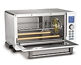 Cuisinart - 9 functions with digital controls with large blue backlit display Spacious 06 cubicfoot capacity fits 6 slices of bread or a 12 pizza Dimension1850l x 1535w x 984h Bpa free Easyclean nonstick interior with white door and brushed stainless steel exteriorClock and 2hour timer and a automatic shutoff Convection fan cooks food faster and more evenly