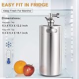 Solid food grade 304 stainless steel healthy ss304 keg barrel keg spear aluminum 030 psi regulator controls pressure between 120psi plated brass tap and silicone tubing Perfect for home brew craft draft beer Pressure release valve allows safe removal of tap accessories 126oz portable keg easy fridge storage easy to carry out storage at home Short cap design fits standard kegerator cooler fridge well Easy grip metal screw on cap for safe storage portable transportation 126oz big capacity tap growler takes your drink anywhere
