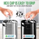 128oz volume capacity includes metal screw on cap for easy portable transportation storage Its 157 short cap design fits into your home fridge or kegerator The barrel is the same volume as traditional growlers laser marked at the fill level Set inclusions the 37 liter keg includes cap spear brass tap co2 aluminum regulator w 030 psi food grade silicone oring kit 4724 silicone beer tubing 02 inner diameter 04 outer diameter Perfect for any homebrewcraft draught beer