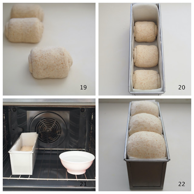 - Place all dough in a loaf pan lined with parchment paper. Let the dough proof at warm and dark place until it reaches the rim of the pan (This one took approximately 3.5 - 4 hours).