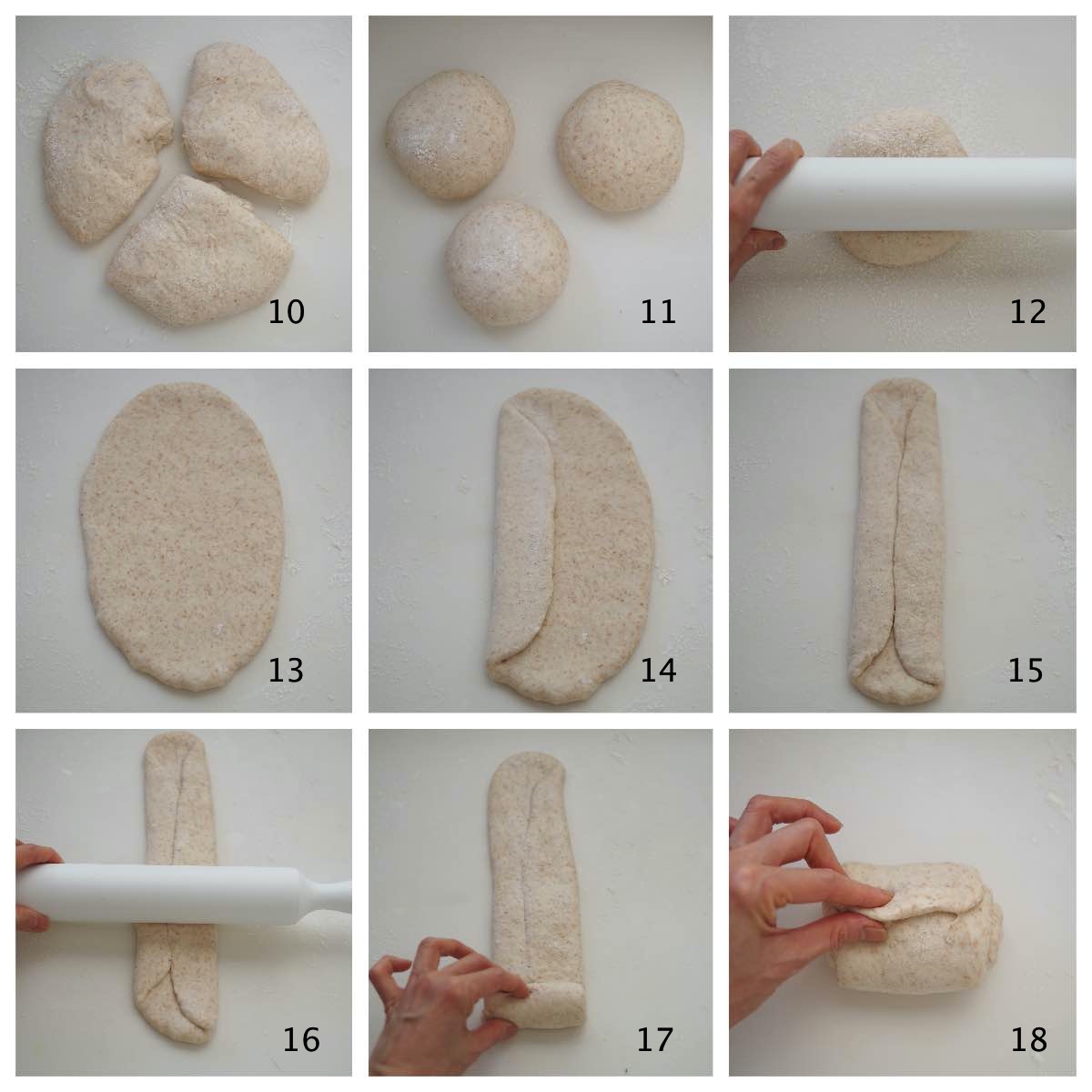 - Punch down the dough to release the air. Transfer the dough to a clean floured surface then divide into 3 equal portions.